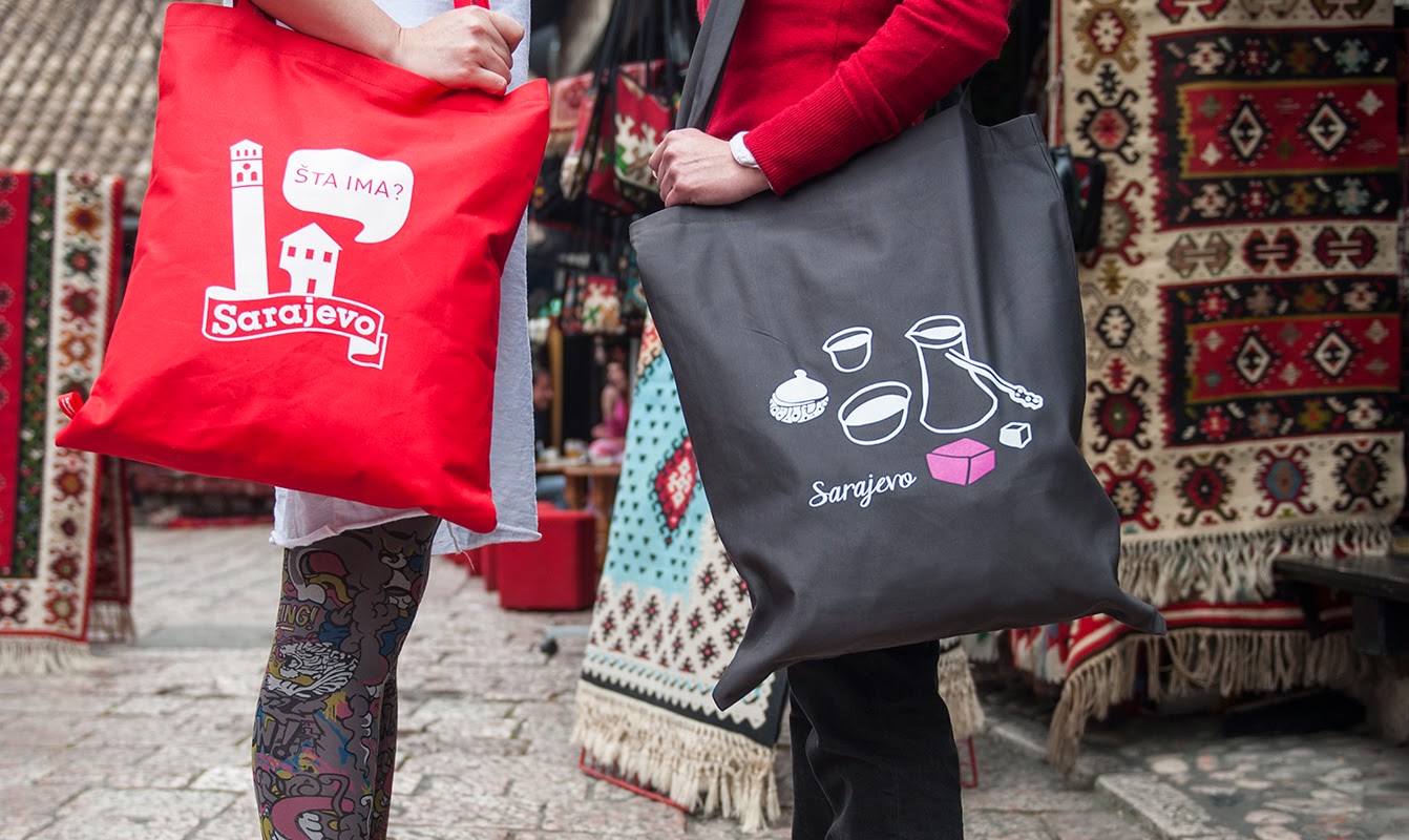 Sarajevo Dingbats su predstavljeni na – torbama, neseserima, bedževima, majicama, magnetima, šoljama…